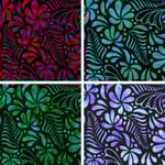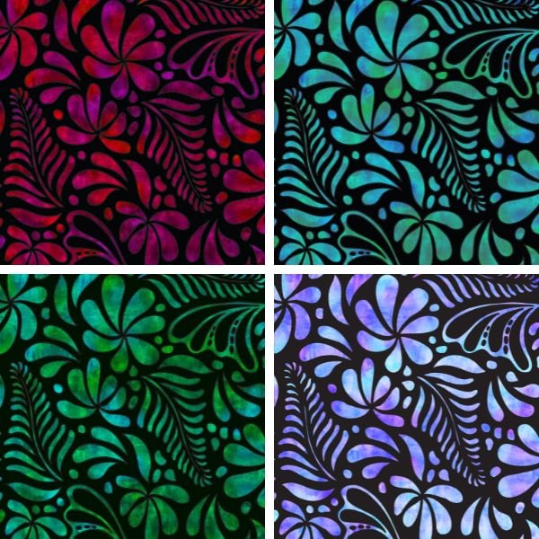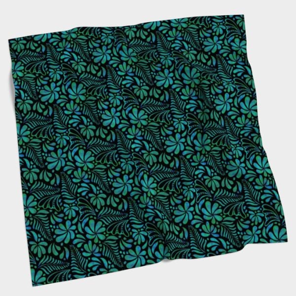 Loose flowy floral motifs in saturated jewel tones on a black background. This scarf features my artwork printed on lightweight 100% silk habotai, finished with a machine rolled baby hem. Made from pure silk and printed using permanent reactive inks that bond with the cell of the fiber means the print is permanent and will never fade with use or washing.