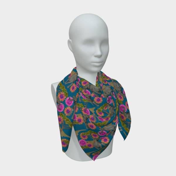 This scarf features my artwork printed on lightweight 100% silk habotai*, finished with a machine rolled baby hem. Made from pure silk and printed using permanent reactive inks that bond with the cell of the fiber means the print is permanent and will never fade with use or washing.